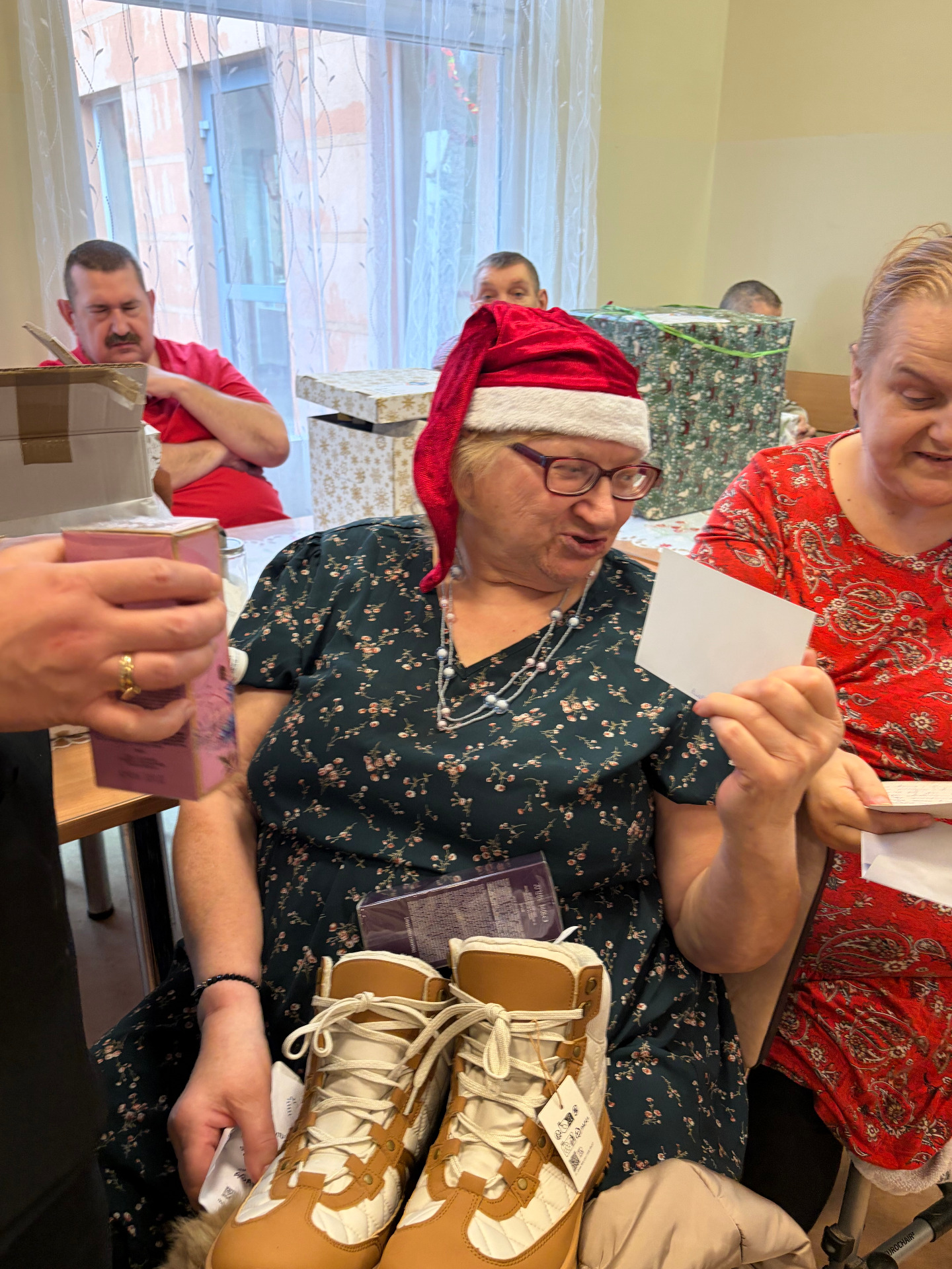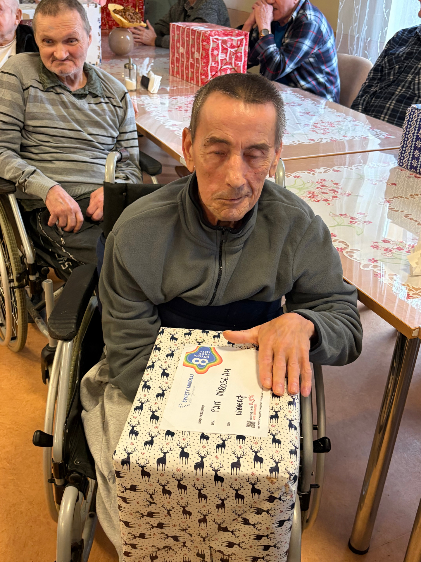 Niektórzy Mieszkańcy otrzymali pierwszy w życiu prezent, stąd łzy wzruszenia na twarzach naszych Mieszkańców nie były rzadkością… Atmosfera była pełna ciepła i uśmiechów.