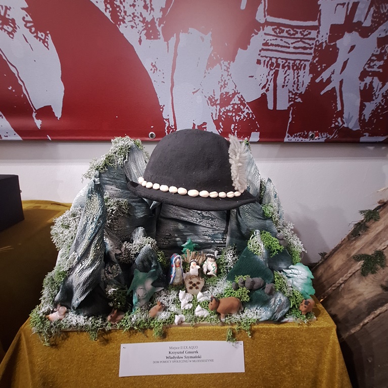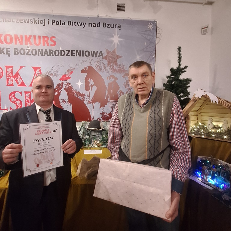 W Muzeum Ziemi Sochaczewskiej i Pola Bitwy nad Bzurą odbył się kolejny XXXI konkurs na szopkę bożonarodzeniową pod tematem przewodnim ,,Szopka Góralska”. Mieszkańcy Domu Pomocy Społecznej w Młodzieszynie swoją szopkę zatytułowali „SZOPKA POD KŁOBUKIEM”, nazwa wzięła się od góralskiego kapelusza. Nawiązując do tytułu, kłobuk w naszej szopce był schronieniem dla Świętej Rodziny, która tym razem swoje miejsce odnalazła wysoko w górach. Pracę wykonaliśmy podczas wspólnych zajęć terapeutycznych w miłym nastroju i z ogólnie dostępnych materiałów, czyli krepiny, piankoliny, sklejki, chrobotka czy też zwykłego kapelusza, który przerobiliśmy na kłobuka. Jesteśmy dumni że nasz pomysł spodobał się komisji konkursowej i zajęliśmy II miejsce, a nagroda jaką otrzymaliśmy jest wspaniałym prezentem gdyż lubimy grać w szachy i warcaby.